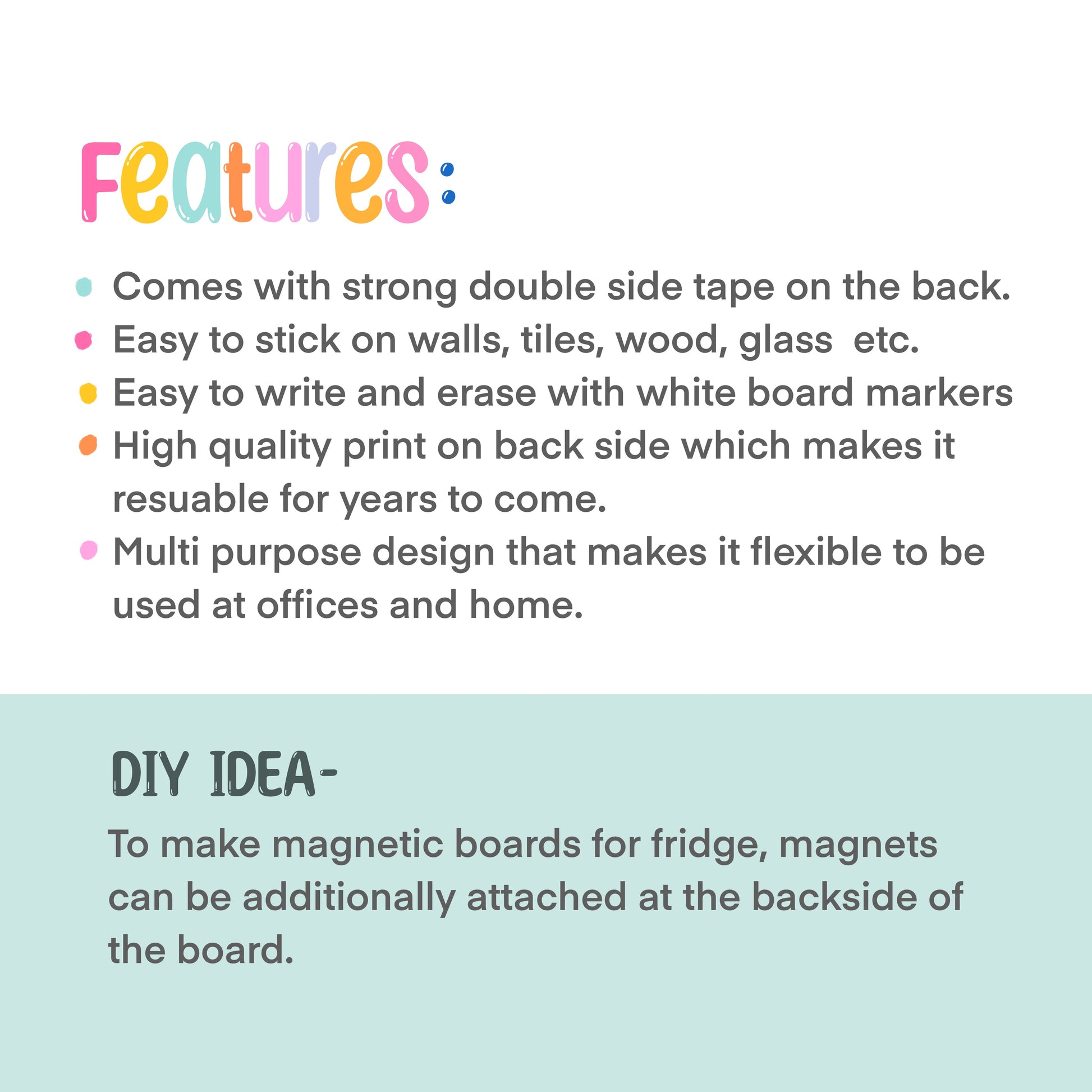 - Double-sided tape included for effortless installation; can be transformed into magnetic boards with added magnets.