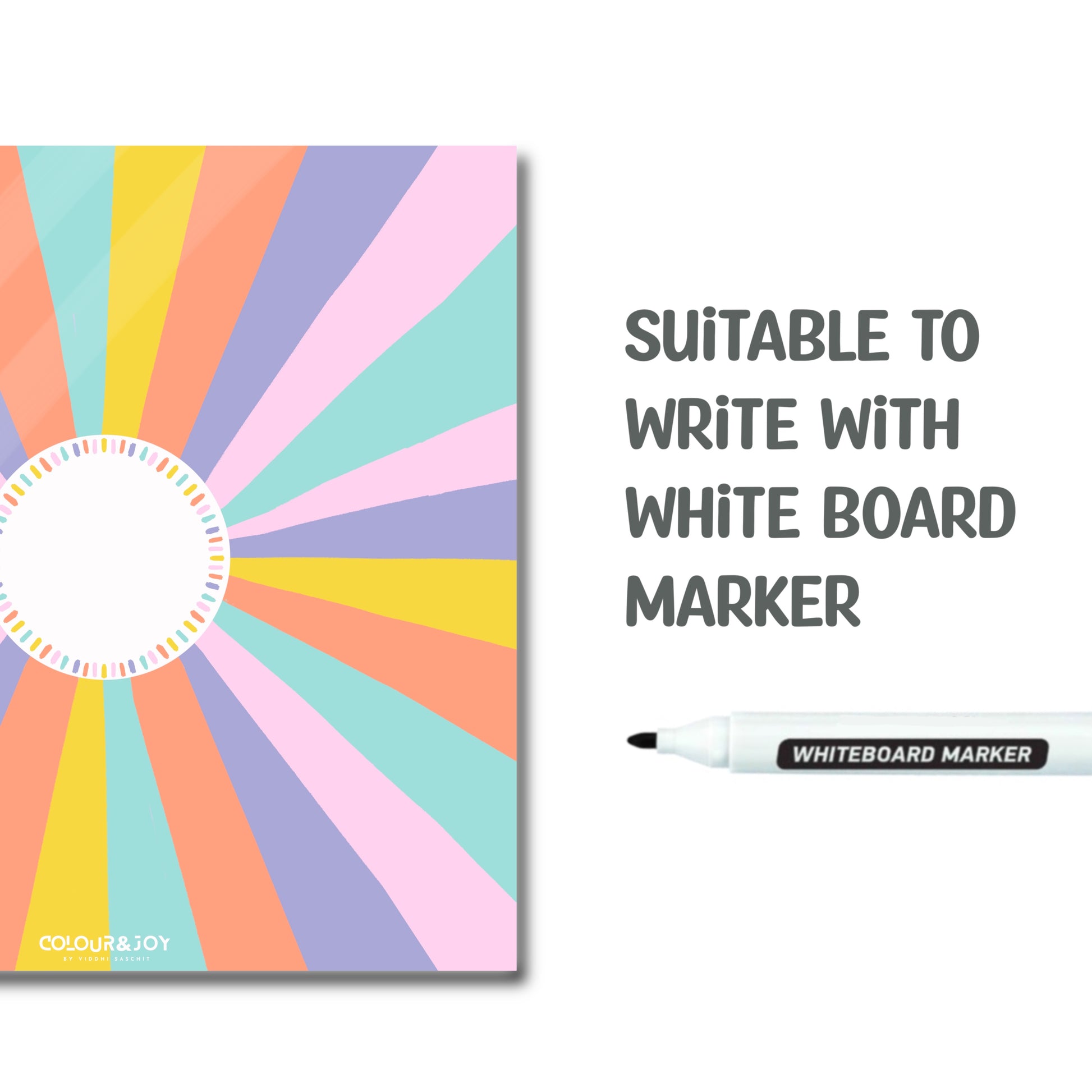 This Board has a versatile radial design, perfect for writing affirmations, empowering messages, or uplifting quotes. Fill the board with inspiring words to express positivity and self-belief. Customize it with your personal affirmations for a daily reminder. This board's versatility allows for various uses like goal-setting, gratitude practice, or creative expression.